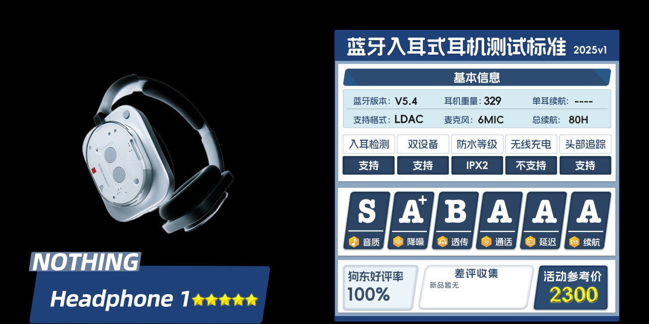 这次测试下来还是挺出乎我意料,名气最大也是销量最好的机型,反倒是性能体验最糟糕的,一些比较冷门和小众的新品,无论是性能还是售价上都会明显更有诚意。总的来说,旗舰蓝牙头戴耳机,我会首推Nothing Headphone 1,惊艳不落俗的外观设计以及精致的做工质感,优秀的单元性能加上十段PEQ的可调整性带来的声学体验,还有非常出色的综合性能,可以说除了机身重量稍重佩戴稍显压头,我几乎挑不出这款的毛病,而且这款的空间音频与头部追踪也做的非常出彩,非常推荐同学到手体验一下,顺便一提,渠道货售价已经1500左右,香到爆炸。