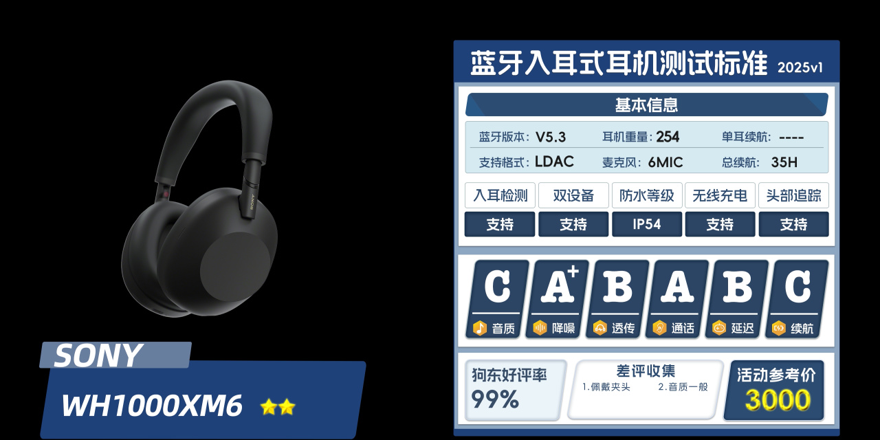 索尼XM6就不多说了,挤牙膏式更新,感兴趣的同学可以看看我之前的单品测评,虽然性能还过的去,但为什么我不选便宜了一半性能也没差的XM5呢