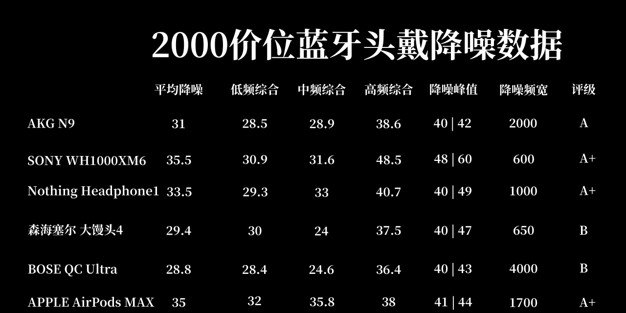 AKG N9,SONY WH1000XM6,Nothing Headphone1,森海塞尔 大馒头4,BOSE QC Ultra,APPLE AirPods MAX