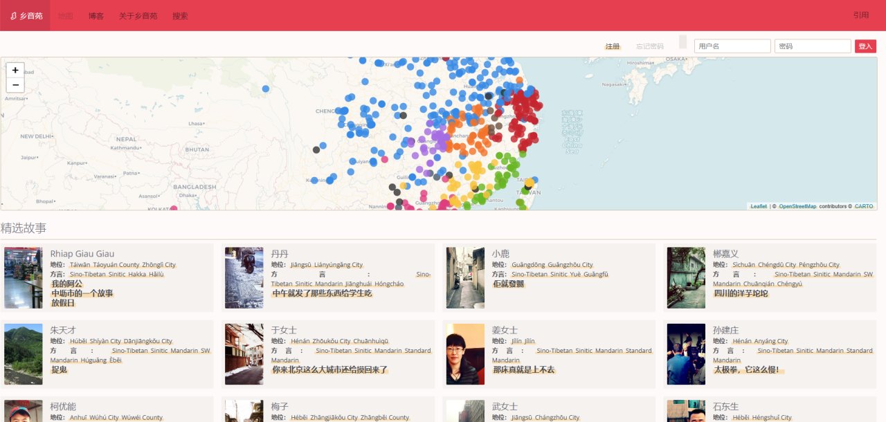 要講的是這是一個收錄了全國各地方言的網站,地圖上的每個點就代表着一個網友上傳的方言錄音,可以聽一下,在這個搜索按鈕在輸入地名同樣也可以找到