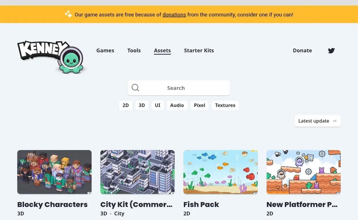 全球最大免費遊戲素材庫,提供2D/3D模型、UI套件、音效(含像素風/科幻風資源包),支持商用無需署名。