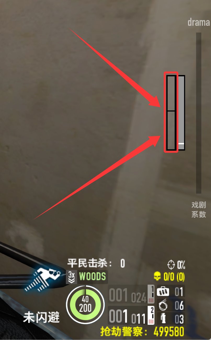 当你有闪避点数时,闪避条就会在强袭时显示在屏幕右方。