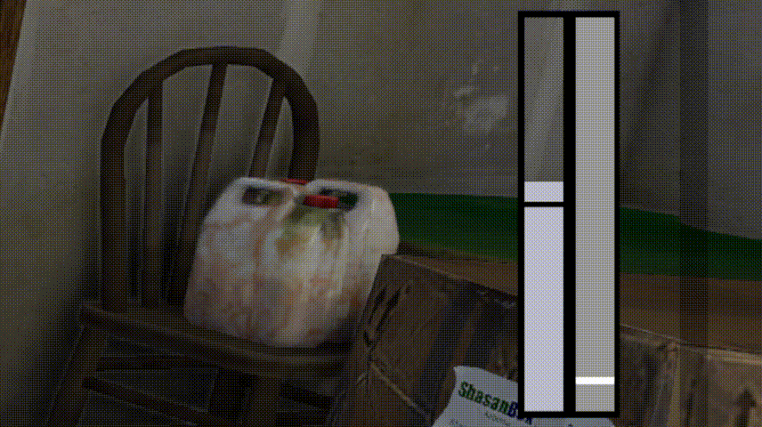 本模组在屏幕右方引入了一个闪避条(右边灰色白线的是跑步用的耐力条)。