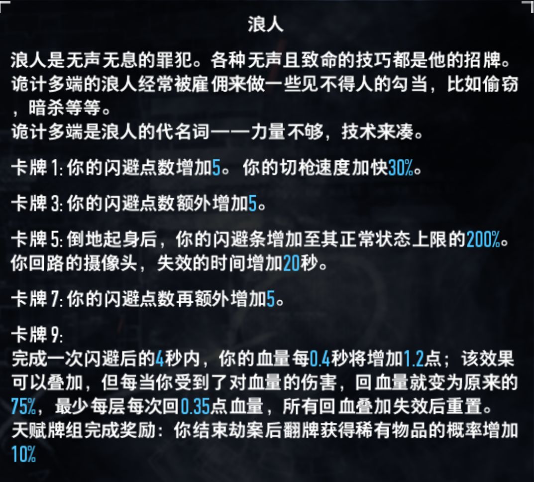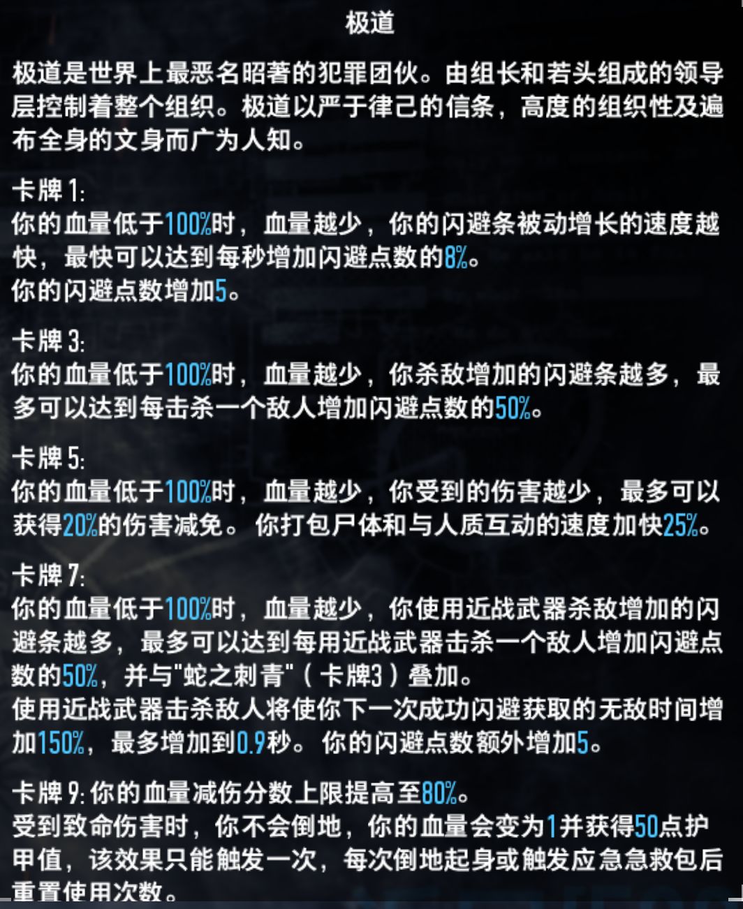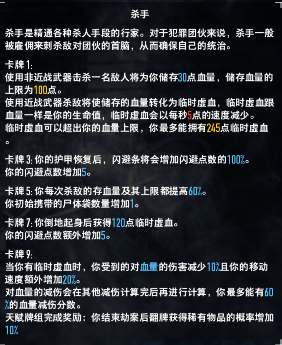 所有天赋都进行了或大或小的修改,其中杀手和极道变化最大: