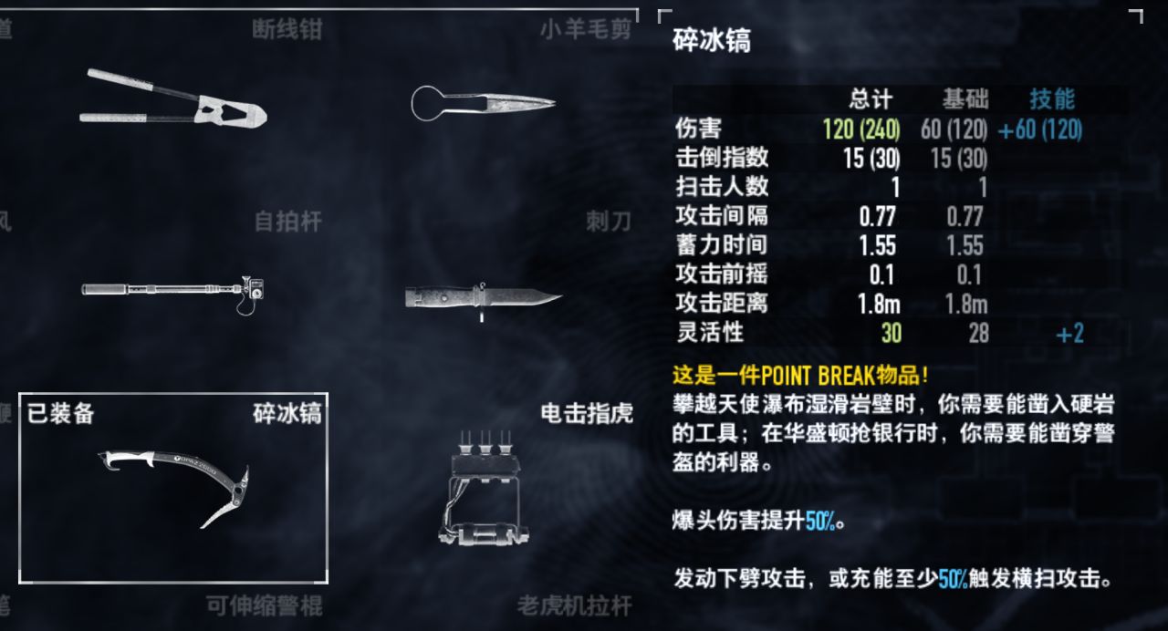 近战武器的击倒数值还会用于对熊面甲的伤害,也就是说部分钝器还可用来破熊的面甲。