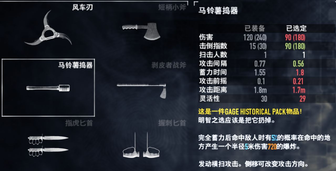 此外,有些近战武器还添加了特殊效果(由于重大版本更新,汉化还未完全完善,所以会有“充能”这种一眼机翻的词存在):