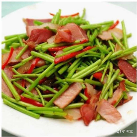 藜蒿炒臘肉是江西省的一道特色名菜,屬於菜,是十大贛菜之一,其主料藜蒿主產自鄱陽湖沿岸一帶,其製作步驟爲:將藜蒿去根後的嫩莖切成段,臘肉切成絲。先炒臘肉,後加入藜蒿和蔥段炒,加入湯料,片刻起鍋即成,成菜後,臘肉金黃,藜蒿青綠,脆嫩爽口,且有一股特別的清香味道。