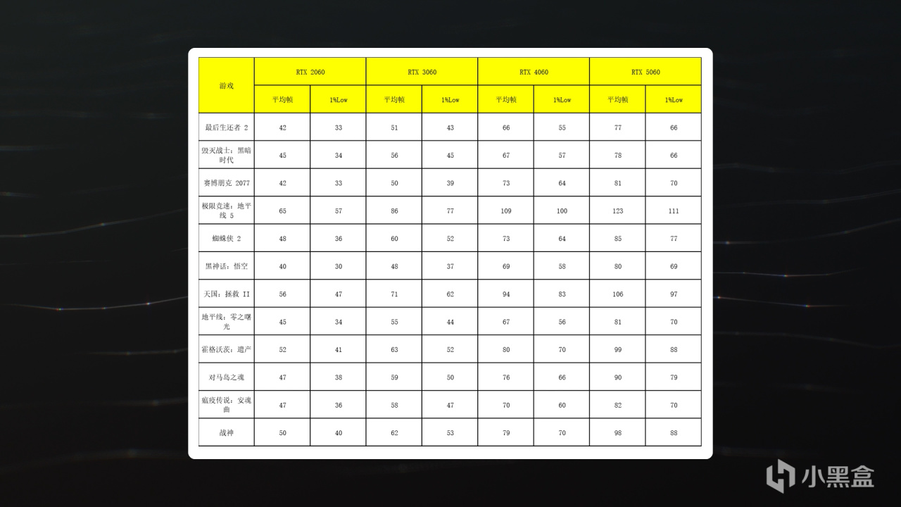 要知道这款游戏可是伴随着RTX 20系一直打到了现如今,称之为显卡质检员也不为过,而新一代的4060以及5060则是统统获得了不错的帧数表现。