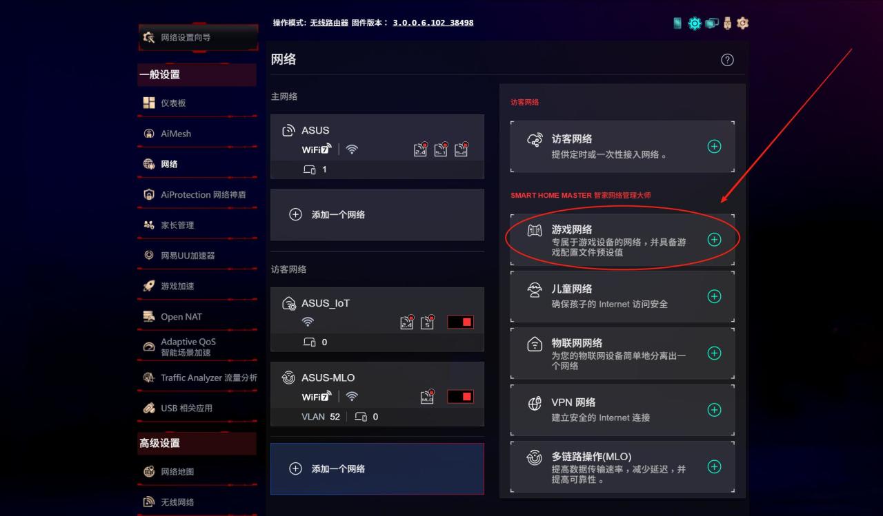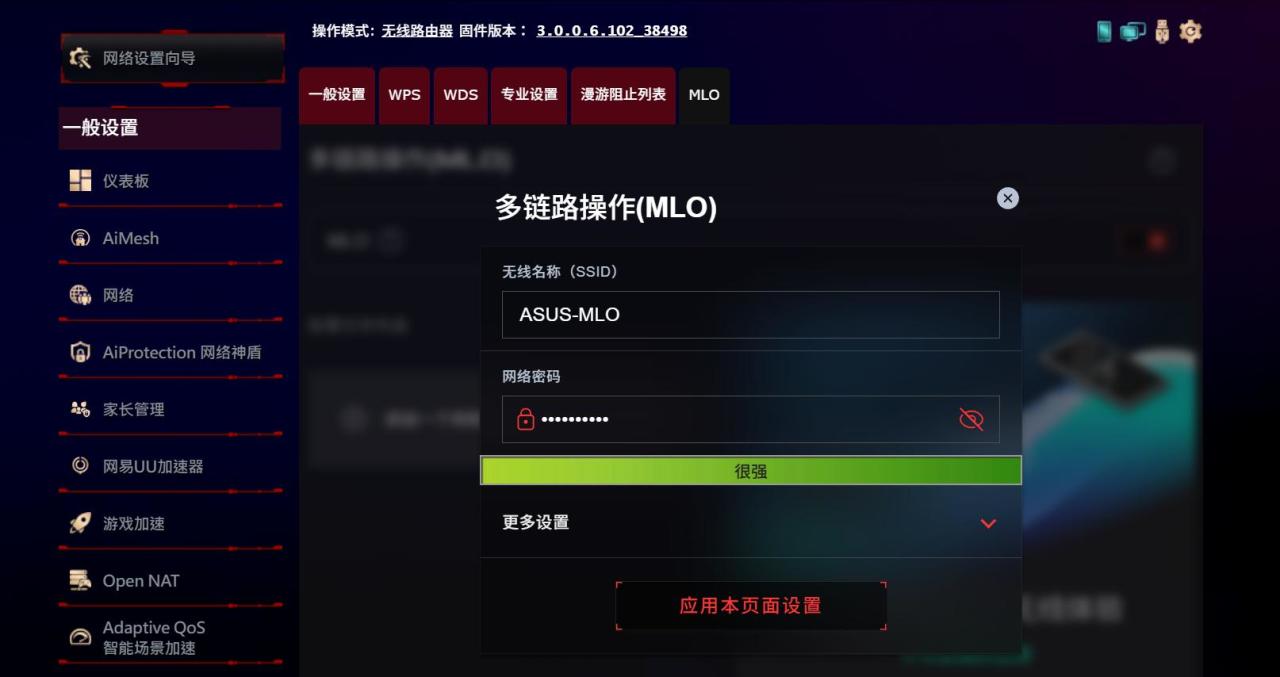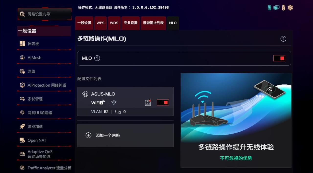 点击“添加网络”,跟随向导创建MLO网络(建议SSID命名为“XXX_MLO”便于识别),我设置的ASUS-MLO。