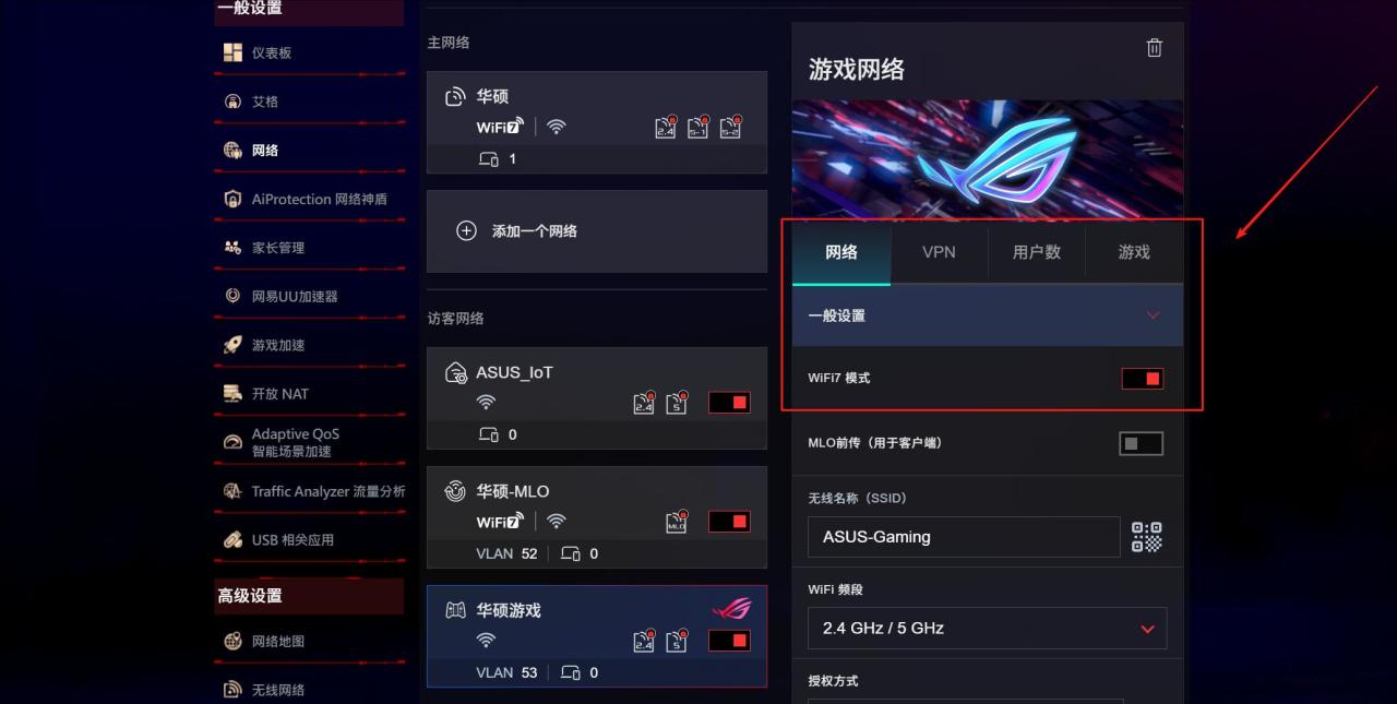 无线设备则连接名为“ROG-Gaming”的专属SSID(系统自动创建)。