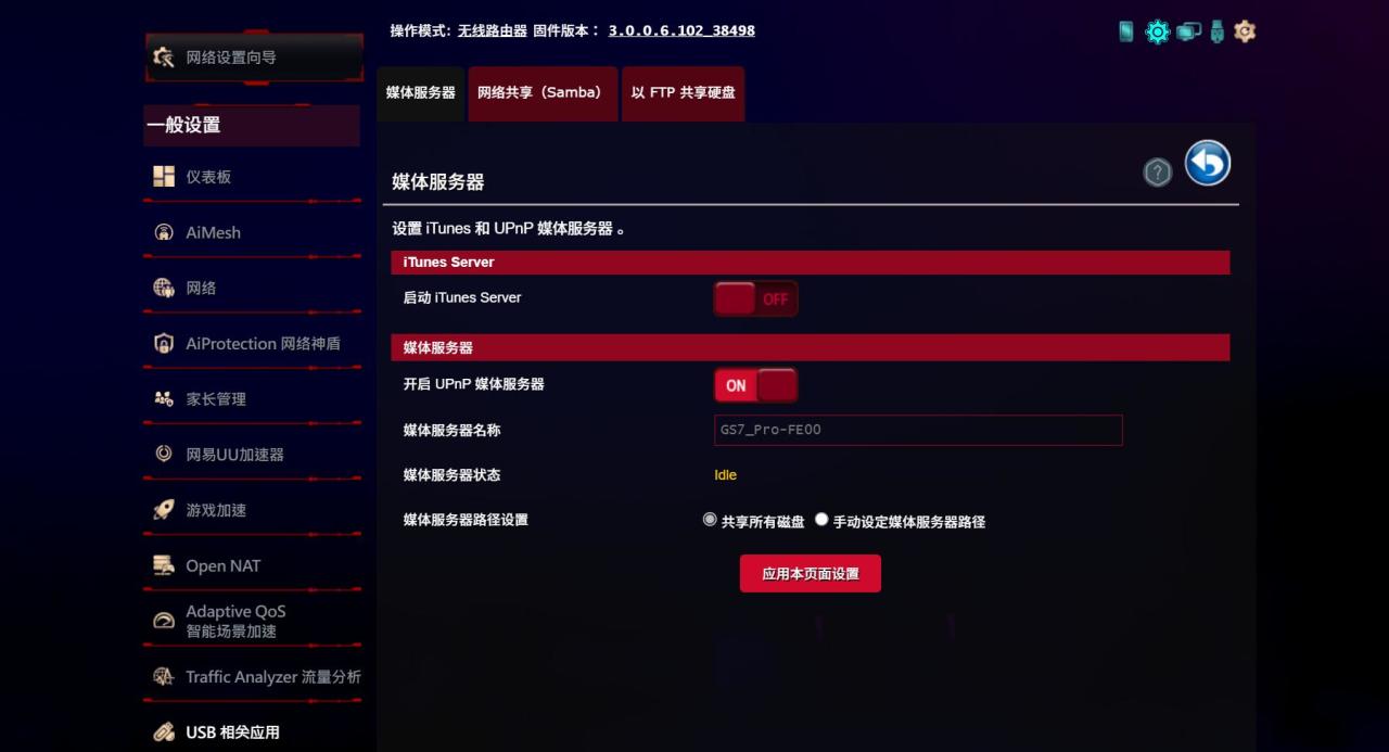接下来打开UPnP媒体服务器,就可以在局域网各种设备,如电视,手机端播放器均可以搜到U盘里面的资料。