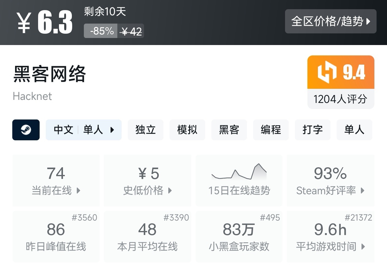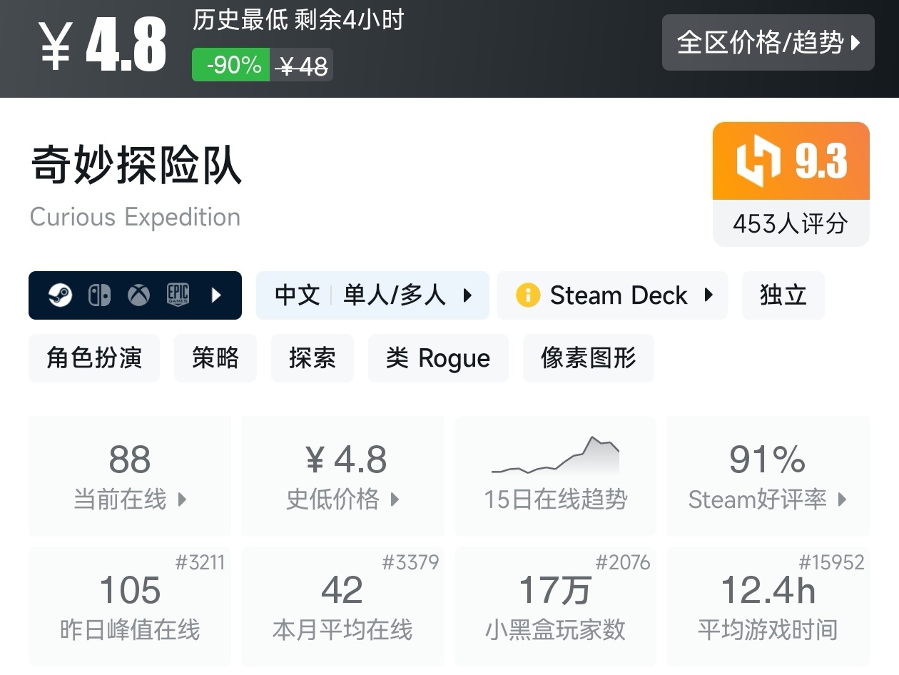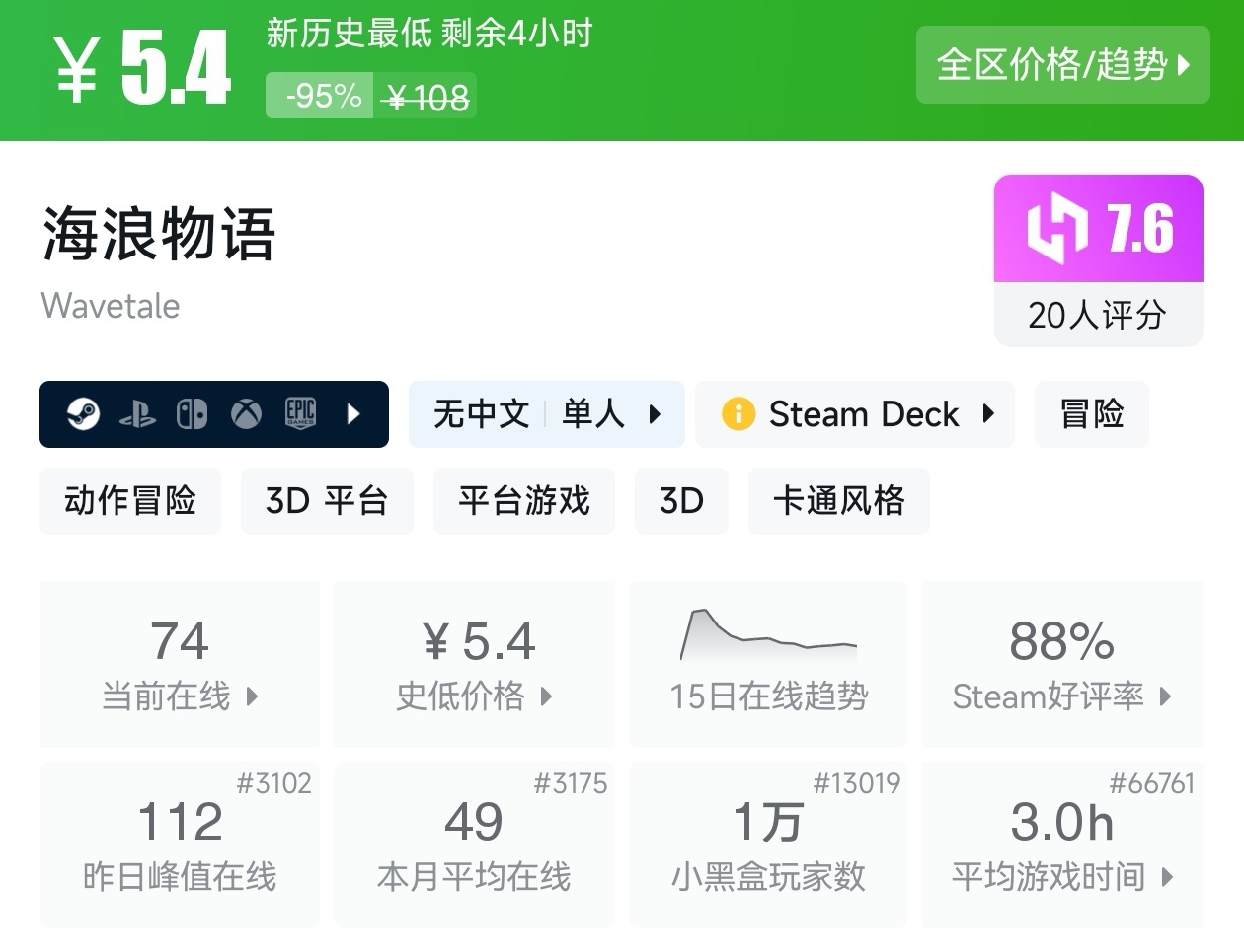 大家好,沒錯,又是我,你們的老朋友亦然,在最近有很多遊戲都迎來了折扣,其中不乏那些價格在個位數的遊戲,只能說好玩不貴,經濟實惠,大部分遊戲評價都挺不錯的,而且數量其實還很多,我將爲各位進行一個彙總,希望我的彙總,能夠幫助各位盒友挑選心儀的遊戲。
