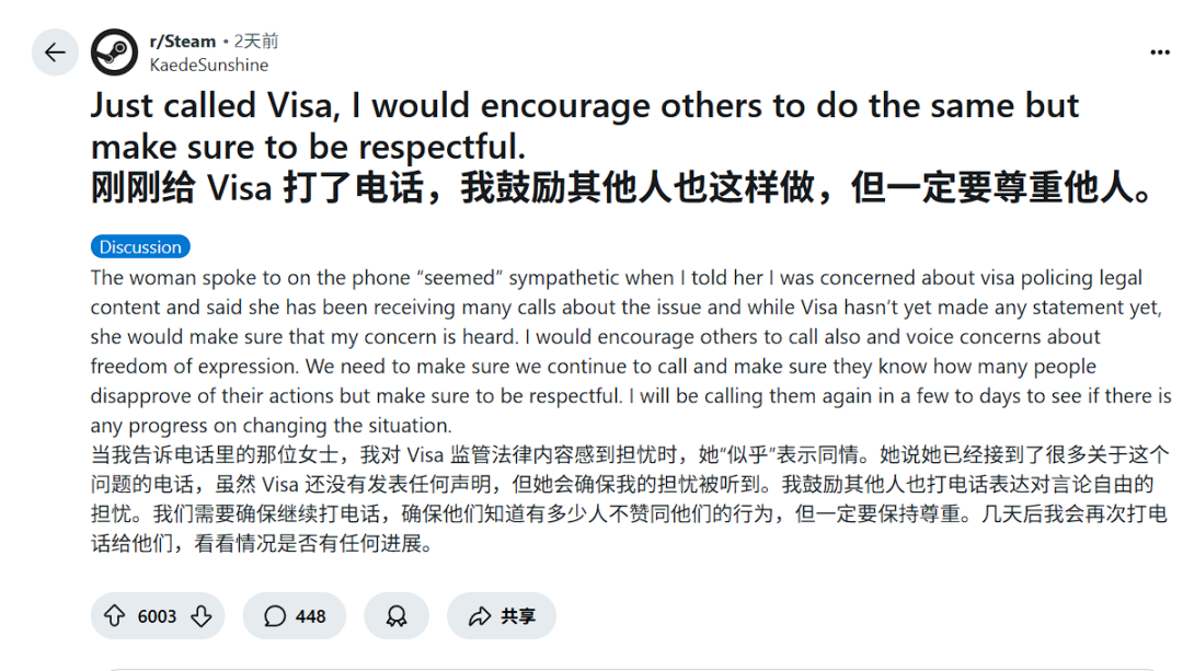 作为无法直接接触到支付处理商的一方,虽然没有什么直接的办法,但开发者们也并不打算束手就擒。目前,红迪、Bluesky和推特上都已经出现了由开发者和玩家组织的电话和电子邮件抗议投诉。