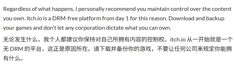 itch创始人:不要让任何公司来规定你能拥有什么。