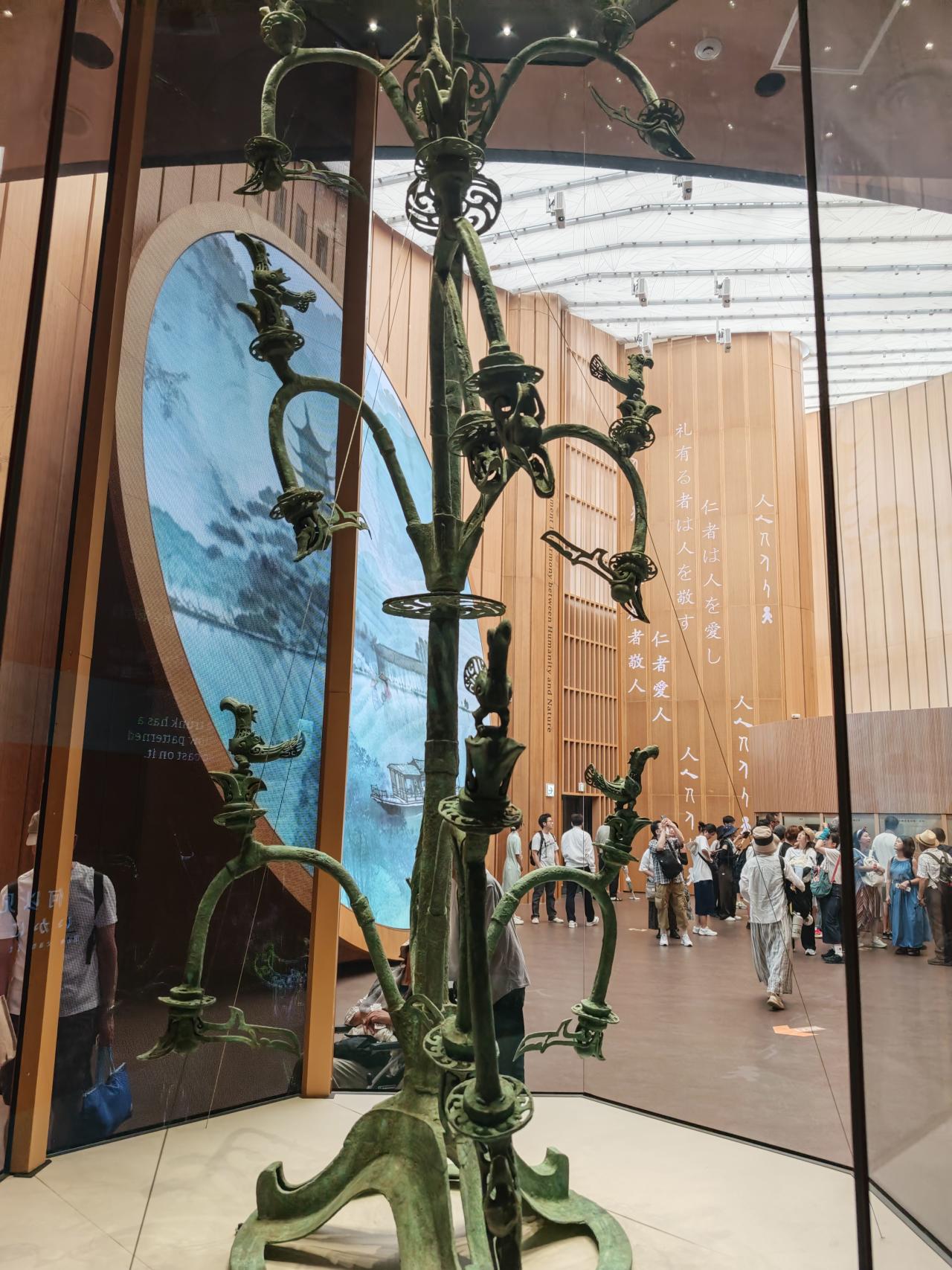 进门后最早看的馆之一,中国馆真的非常有诚意啊。不仅有三层的参观区域,展出内容也很丰富,从传统文化到现代智能,从科技发展到生态保护,不仅对本次世博会的主题作出了很好的回应,而且可以看到很多日本的学生在参观,文化输出这块不能落下