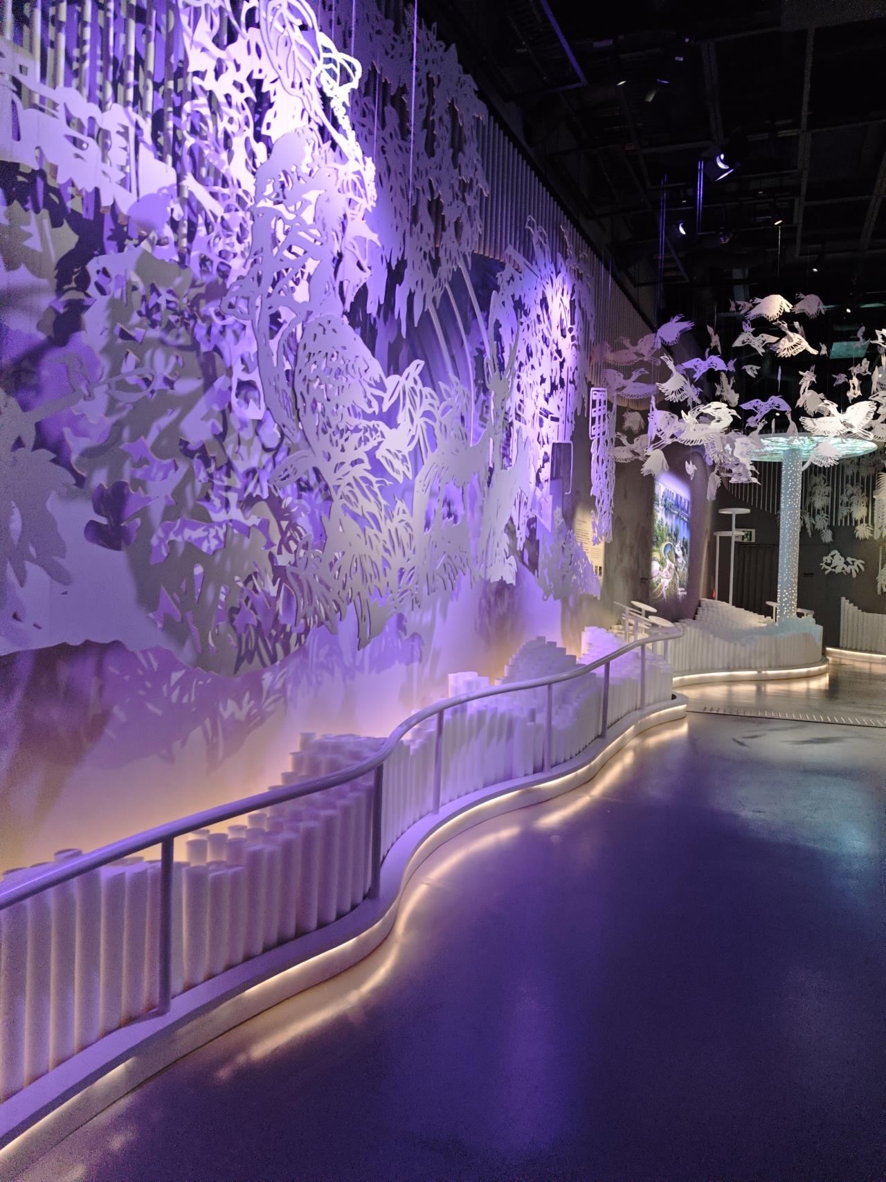 主要展示了新加坡的雨林城市还有人类自然和谐共处的愿景,设计了一个许愿的互动项目,在楼下写下自己的愿望,随后会发送到楼顶的穹顶展示屏上。