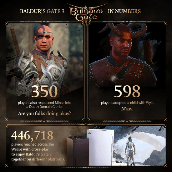 近日,《博德之门3》迎来了正式发售2周年纪念日,拉瑞安也分享了一批玩家在游戏中有趣的选择和游玩数据。例如,游戏上传的总模组数已经有8500个,足足2.65亿次模组下载量。