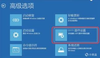 重启后依次选择 “疑难解答→高级选项→UEFI固件设置” 进入BIOS
