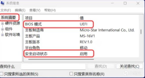 这是需要我们打开电脑的安全模式,按Win+R打开运行窗口,输入“msinfo32”并确定,在弹出的系统信息窗口左侧选择 “系统摘要”,确认BIOS模式为 UEFI 且安全启动状态为 “启用”。