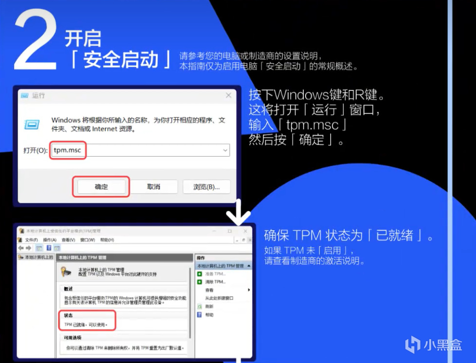 如果BIOS模式不是UEFI,需将Windows磁盘分区设置为GUID分区表;若安全启动关闭,先在运行窗口输入“tpm.msc”确认TPM已就绪,再通过Windows搜索进入 “更改高级启动选项”