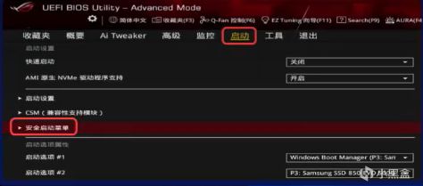 在启动菜单中找到安全启动,将操作系统类型设为“Windows UEFI 模式“,保存设置并重启即可启用安全启动。