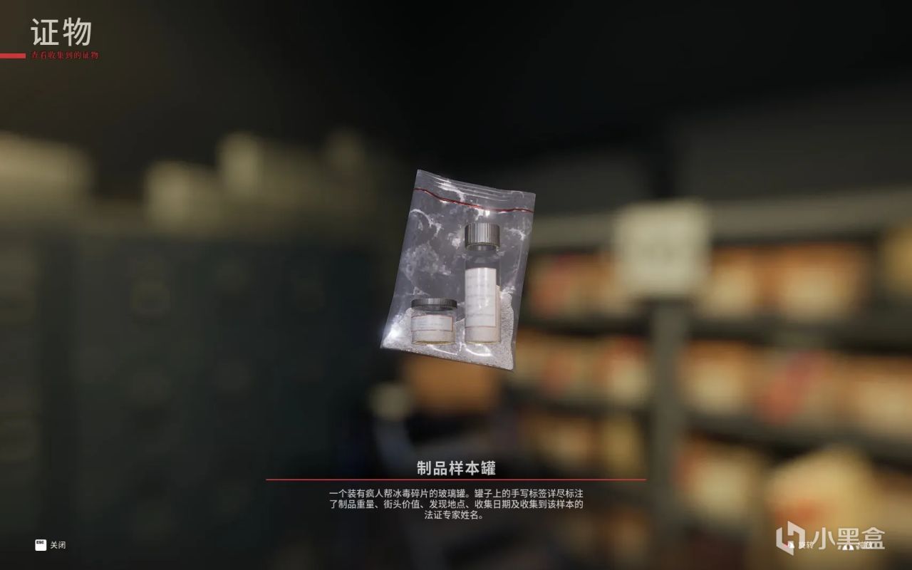 一個裝有瘋人幫冰毒碎片的玻璃罐。罐子上的手寫標籤詳盡標註了製品重量、街頭價值、發現地點、收集日期及收集到該樣本的法證專家姓名。