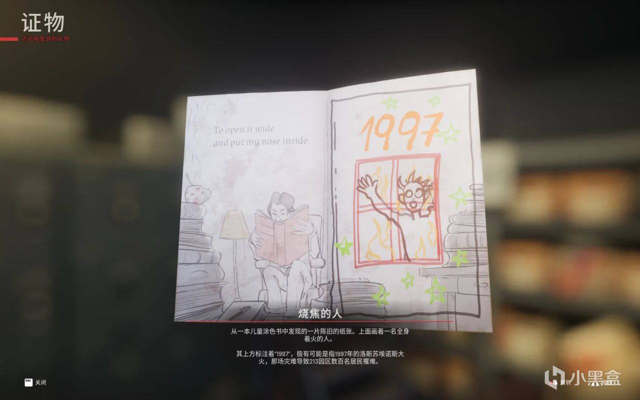 從一本兒童塗色書中發現的一片陳舊的紙張。上面畫着一名全身着火的人。 其上方標註着“1997”,極有可能是指1997年的洛斯蘇埃諾斯大火,那場災難導致213園區數百名居民罹難。