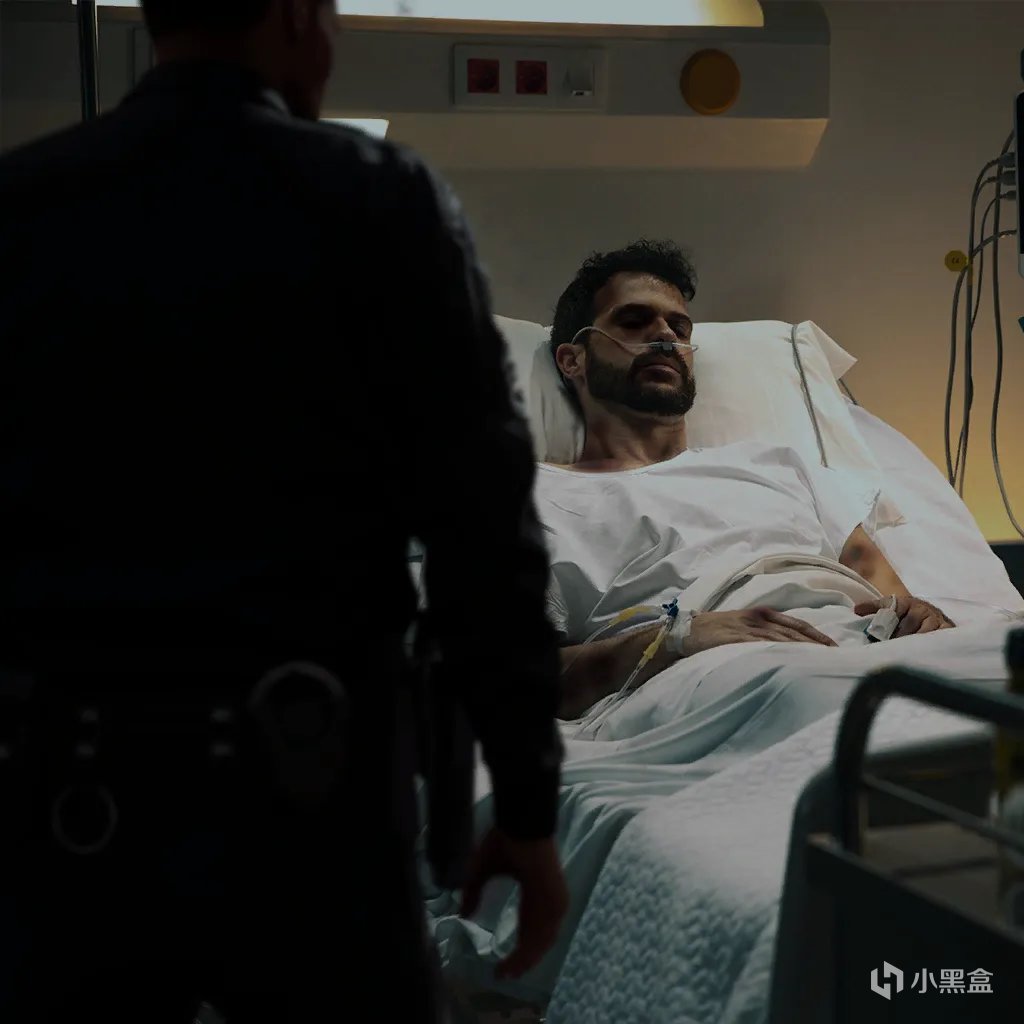 躺在醫院病牀上的里斯·海恩斯正在與一名警員交談,照片是由現場的一名警佐拍攝的。