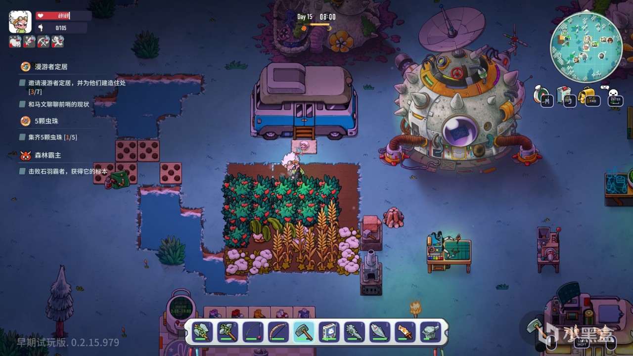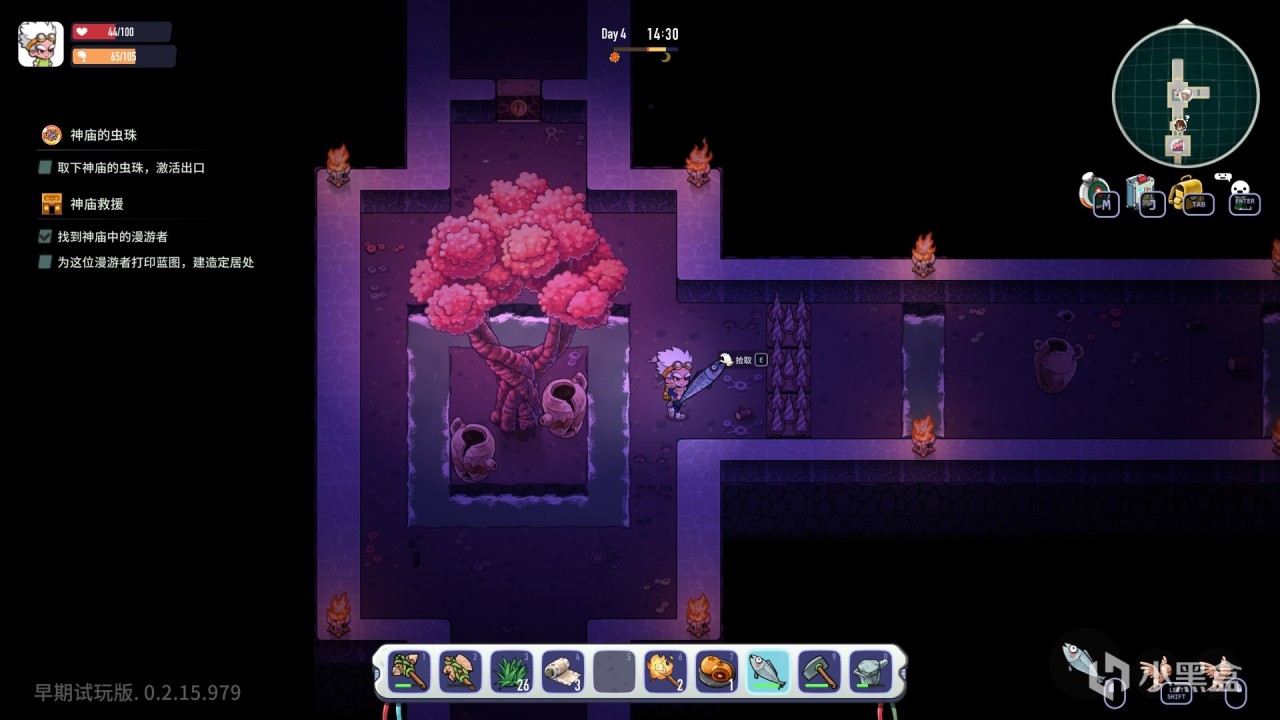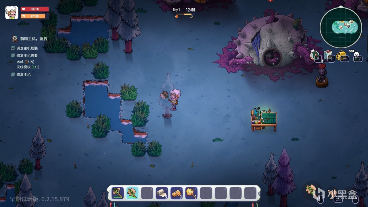 很多俯視角2D生存遊戲一樣,本作也是鍵盤控制移動,鼠標控制朝向,常玩此類遊戲的玩家,肯定不會陌生。遊戲有一個相對完整的教程,遊戲有一個相對完整的教程,會指引玩家一步步進行操作,基本上所有人都能很快上手。