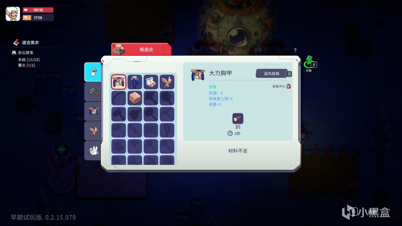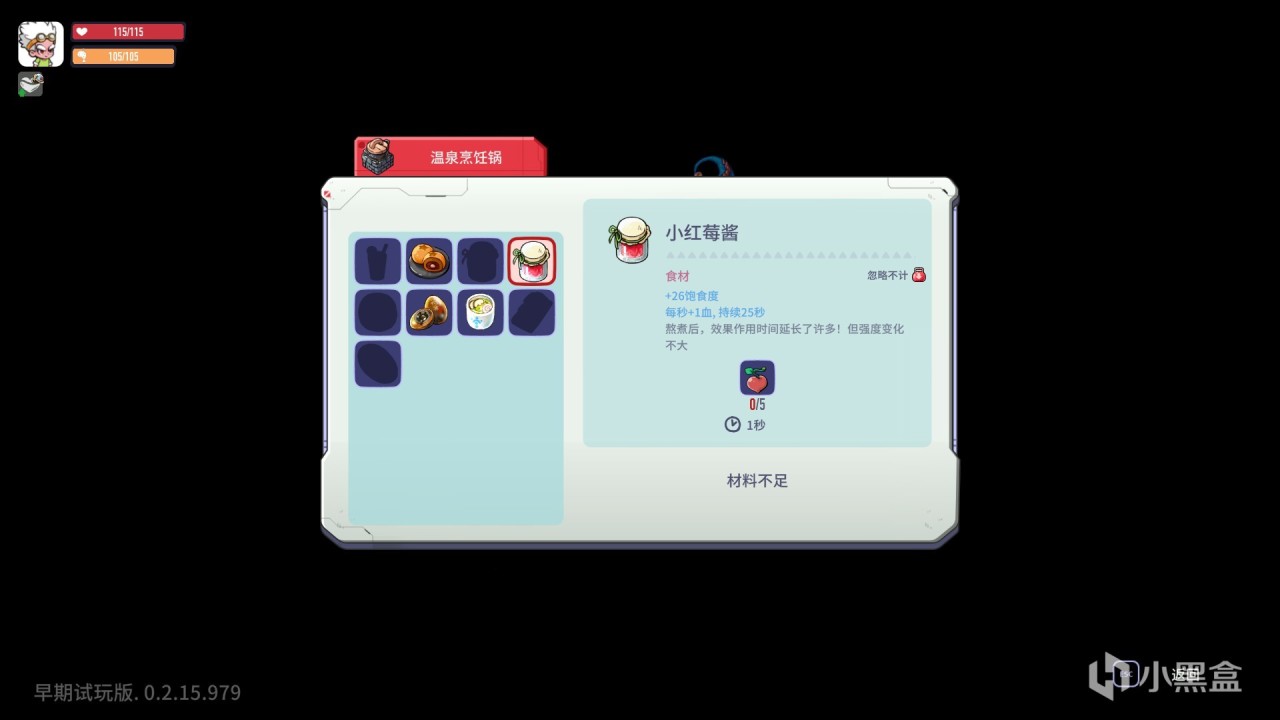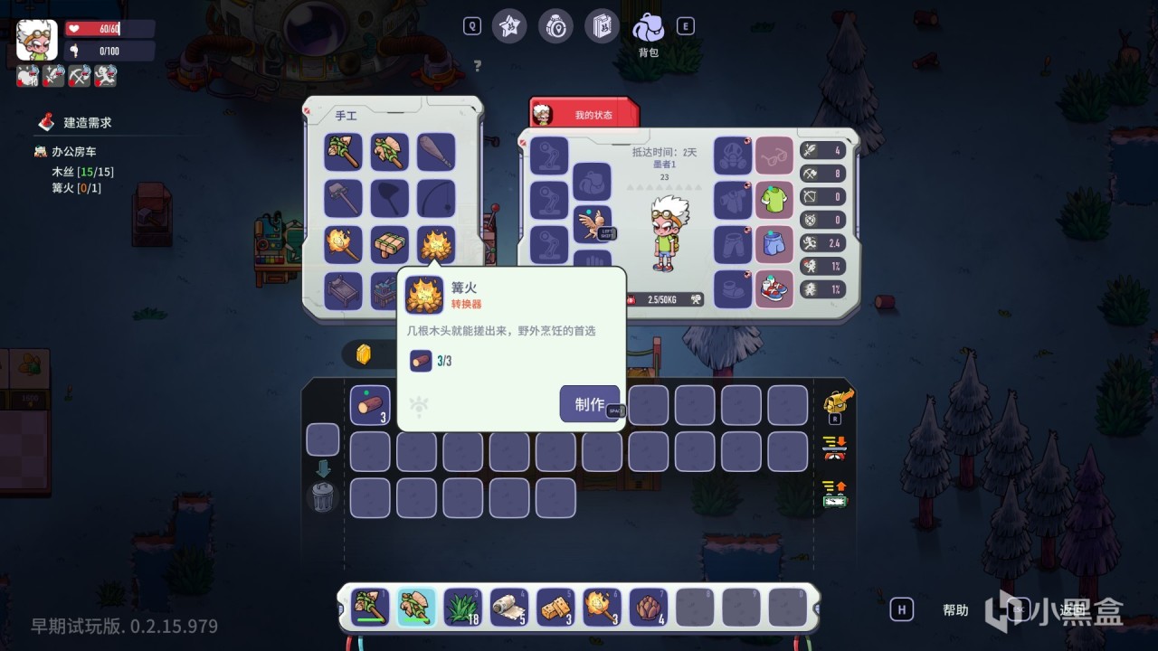 在遊戲中,主角有着生命值和飽食度兩項指標。飽食度會隨着時間而減低,只能通過食材,例如壓縮餅乾、小紅莓等,來進行補充。當然,本作也有不少的簡化設定:只要角色靠近地上的物品,就會自動拾取;這遊戲沒有什麼強制休息的設定,角色可以晝夜不停地幹活;這遊戲沒有體力值的設定,不管玩家進行任何一種生產勞動,都是沒有消耗的……就體驗而言,明顯感受到遊戲有着簡化的思路,或許開發組不想讓玩家疲於應對生存壓力。