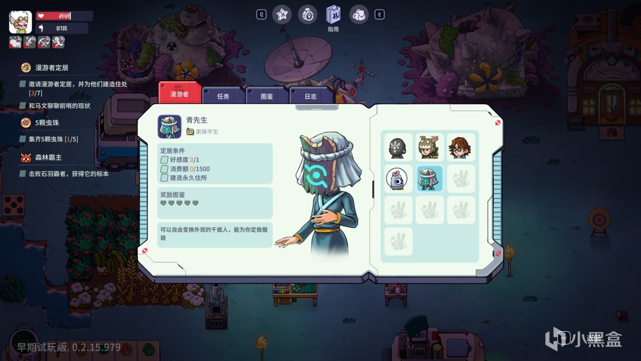 只有當玩家建造了星港之後,纔會有漫遊者到來。當漫遊者來臨的時候,玩家可以與漫遊者進行交流、交互、交易等三交。不同的漫遊者有着不同的喜好和要求,玩家可以盡力去滿足漫遊者的想法,就可以獲得更多的物品道具,例如“羅恩”要收購寶石、材料,也會出售實用的道具;“椒鹽中衛”喜歡昆蟲、魚、標本、蟲珠等,然後給你技能點作爲報酬……除了完成漫遊者們的任務之外,主角可以通過聊天、交易等方式,來提高漫遊者的好感度。所以,有事沒事就去聊聊天,刷個臉熟。