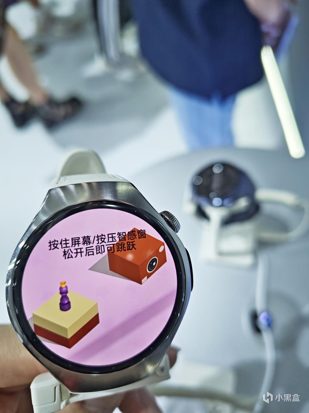 在展区里我玩的最久的游戏很多人应该都玩过:《跳一跳》,但我是用鸿蒙手表玩的,虽然可能游戏性不如手机,但很适合在碎片时间里消磨一下(旁边的游戏有人试玩,我在等他离开)