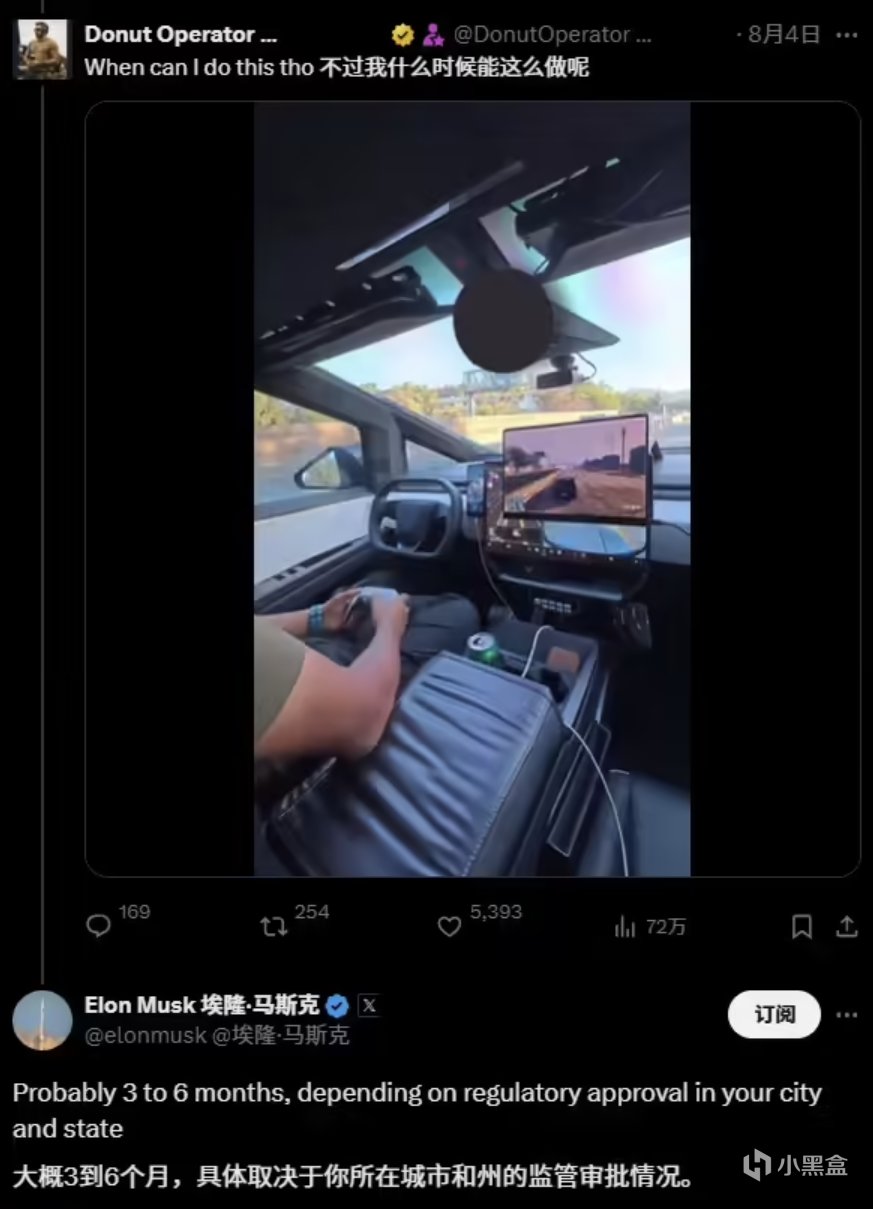 馬斯克在 X 平臺表示,很快司機就能在駕駛時玩視頻遊戲,功能最快將在 3 至 6 個月內上線,條件是獲得所在地監管機構的批准。