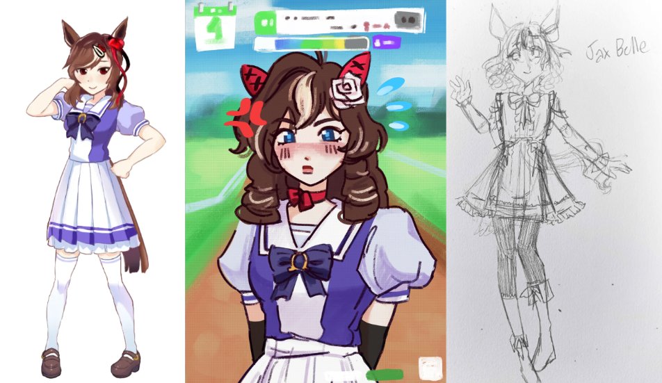 随着贝儿的事迹越传越广,许多人都在如果它再历练几年,说不定也能成为新马娘加入到游戏中,这八字还没有一撇,网友们就已经蠢蠢欲动想自行绘制贝儿的赛马娘形象了,作为马主博主最先想到的就是给她加一个傲娇的属性。