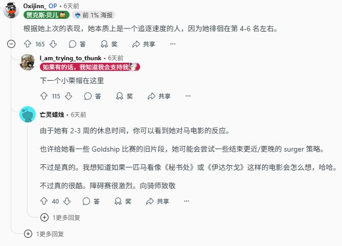 该说不说这欧美赛马娘圈子所展现出来的氛围,还真就是主打一个神奇又和谐,虽然我并不会一直关注这个圈子,但我还是希望这股良好的氛围能保持下去,也希望那位老哥能打理好他的爱马,同时也期待着它会在未来的某一天能跑出一个令人满意的好成绩。