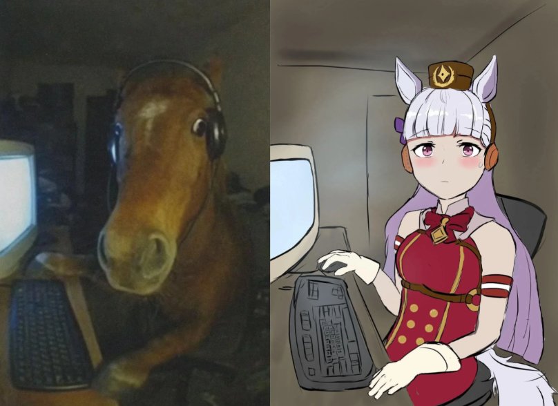 我说《赛马娘》这个IP在互联网上有着很高的辨识度,想必大家应该都不会有什么异议吧,看看近几年国内的互联网环境,那些实时热点和段子是由马娘的Q版小人演绎的,短视频经常用的AI语音包也是马娘的,平时聊天用到的表情包还是马娘的,你就会觉得身边一切能接触到的日常事物似乎都已经被《赛马娘》相关的梗和元素给彻底融入了。