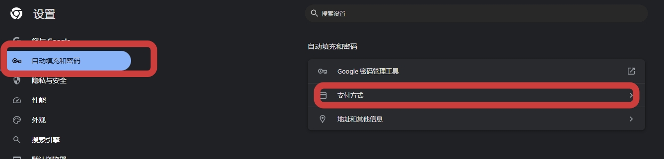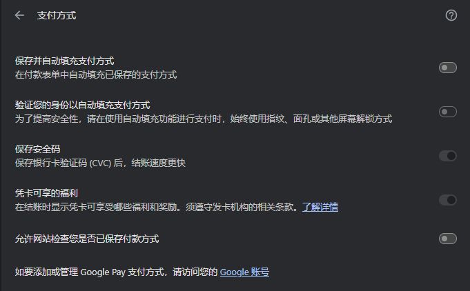 之后点击自动填充和密码,建议将支付方式中所有选项全部关闭