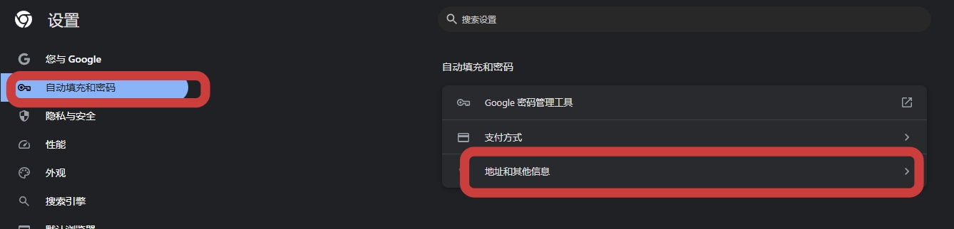 之后返回,来到地址和其他信息,将保存并自动填充地址关闭
