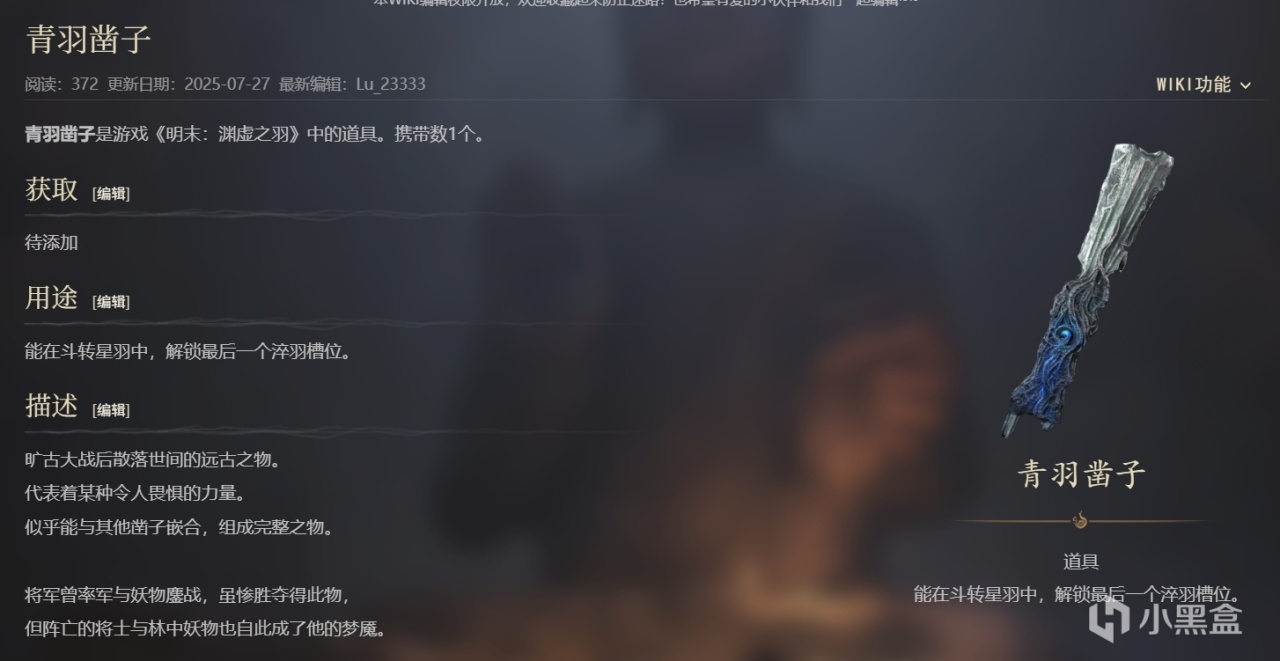 一個在鳥人森林用來複活僰人,嘗試羽化(古巫持有青羽鑿子)