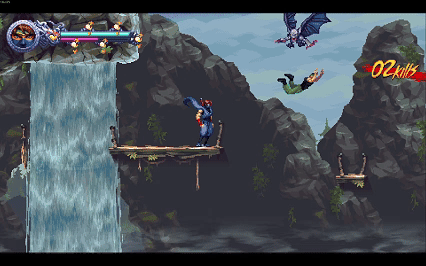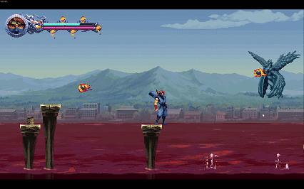 游戏敌人融入到了关卡跳跃中。飞行怪不是用于击杀,而是为了让主角二段跳垫脚,向上或者向前跳出更远的距离。尤其是在海滩这一关,二段跳打鱼前进,空中又有鸟弹幕干扰,关中没有存档点,稍有失误就得重头再来。