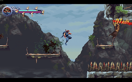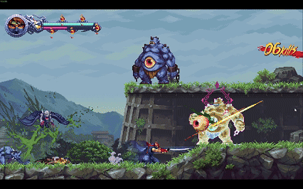 《忍者外传:怒之羁绊》还原了横版卷轴平台跳跃,把跑、跳、砍、爬墙这一套老派但经典动作模组玩出了新花样。没有惯性、操作利落、行云流水打出一套操作,很有成就感(虽然在此之前可能已经死过一次了)。带盾精英怪出现,让战斗不再是无脑砍,杀敌顺序的策略。