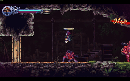 本作并不是清版关卡,可以跳跳乐逃课。只要身法够好,无敌帧的闪避突刺、二段跳断头步、挂壁前行,不用战斗也能过关。移动过程中,随手挥刀斩杀小怪,手起刀落流畅砍杀。击杀只是过程,跳跳乐过关卡才是目标。