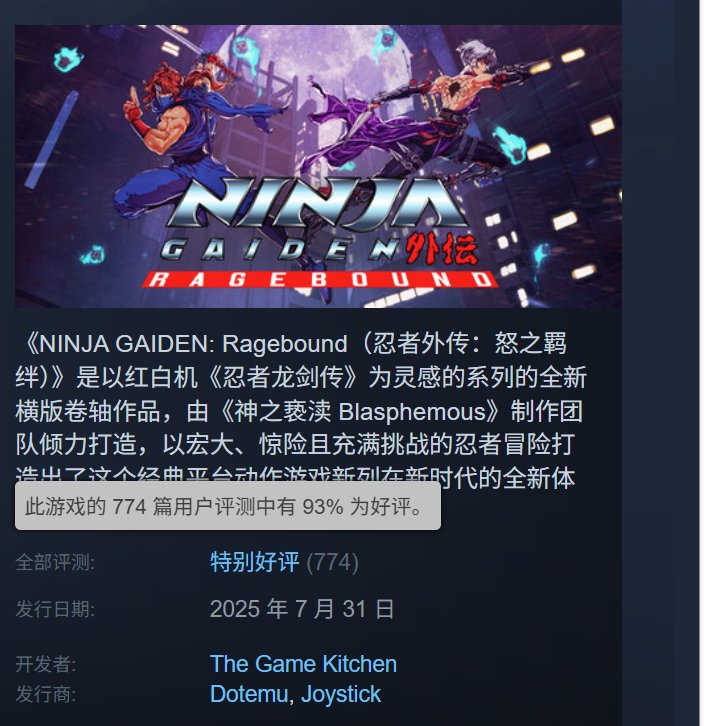 在2025年,这款致敬经典又做出新意的2D忍龙拿下了93%玩家好评率。