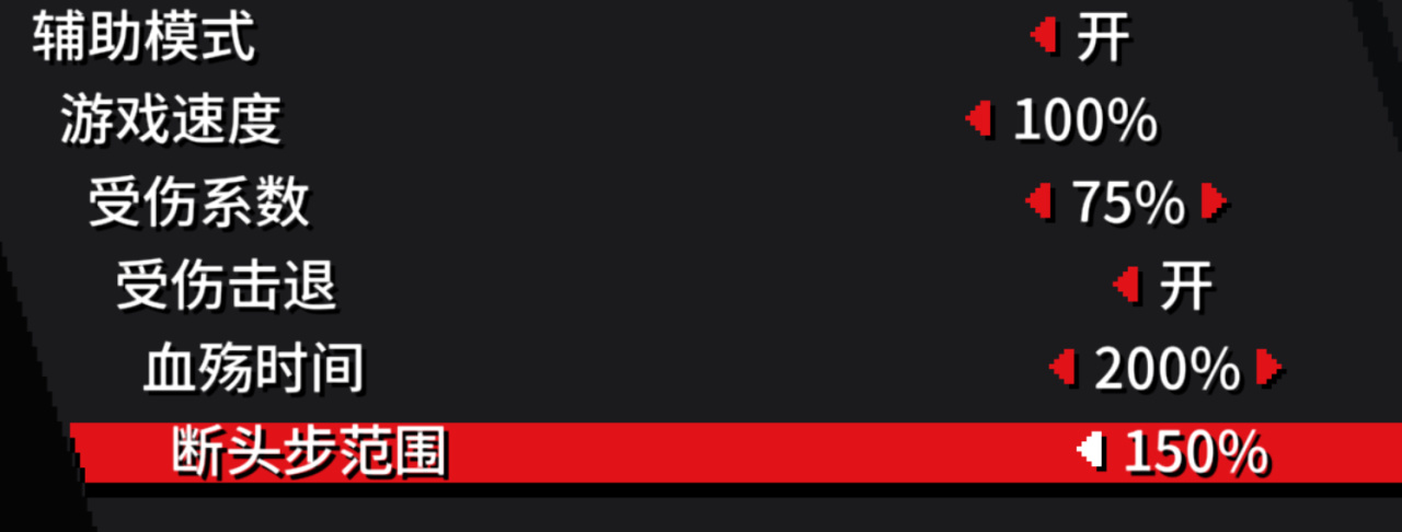 如果你和我一样都是跳跳乐苦手或者想爽玩,游戏自带辅助模式,可调节难度。更低伤害系数(可调至0)、可关闭击退、更长血殇时间、更大的断头步范围。