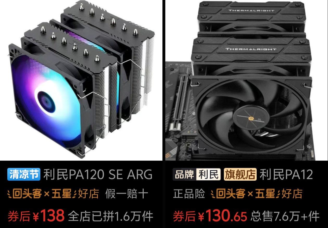 散熱方面我選的是利民PA120SE,在5000——6000元檔裏面他算是比較常見的散熱,整體的性價比很高,配置也不錯,雙塔6熱管,如果你喜歡不帶燈的,那130元 如果喜歡燈 +8塊錢,138,整體的顏值不算差。