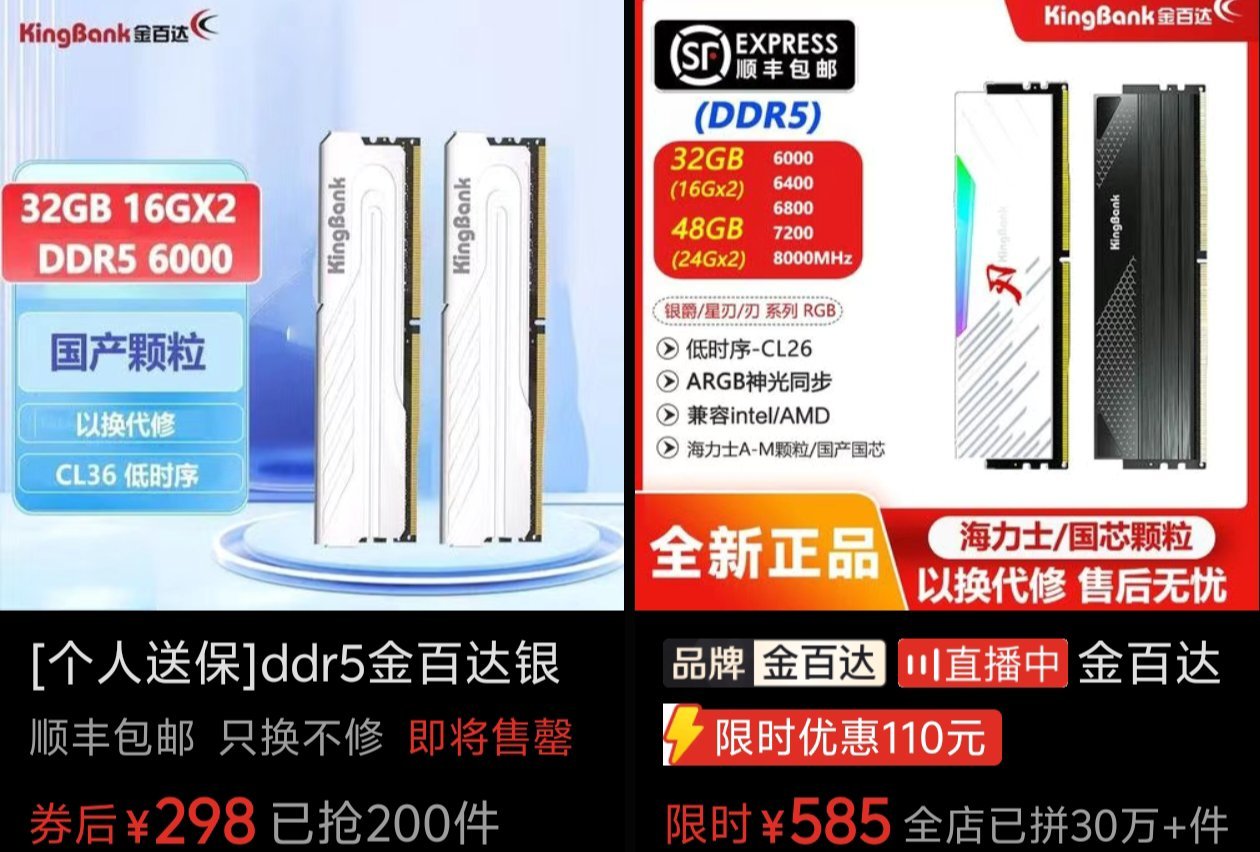 內存條我選用的是金百達銀爵DDR5 6000C30,我記得幾個月前這款條子我還有上手測評過,在目前內存條上漲的市場來說目前性價比挺高的,顏值也不差。當然你也可以選擇其他牌子,只要不是太爛,儘量選光威,金百達這些一線牌子就行。最好的話選16×2,585元,加起來32G的運行內存,日常多開遊戲或者一些軟件完全沒有問題