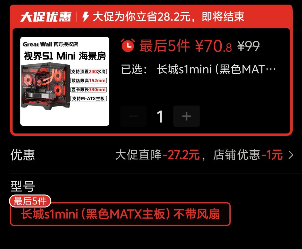 那麼後面像是風扇,機箱這些東西我倒是不怎麼看重的。風扇買了最便宜的棱鏡4,七八塊錢一把,機箱買了長城S1,70塊錢還是黑色海景房呢。當然如果你還想省一下,直接用鞋盒也可以