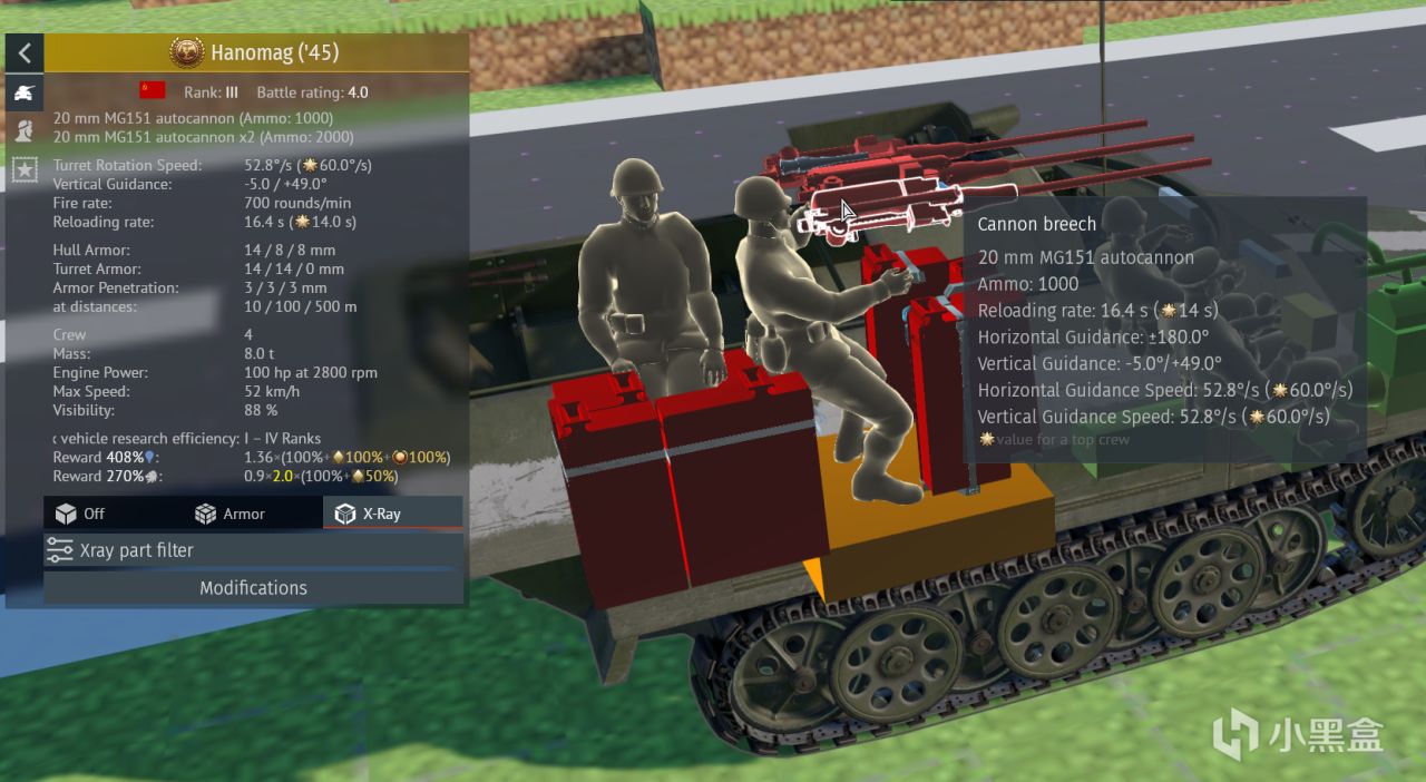缴获251的优点是可以连续开火(这一点好于苏联自家的BTR-152D),投射量也还不错;缺点在于20mm的机炮改装更像是劣化升级,因为原版德国的15mm最高穿深高达51mm,很多时候可以拿来对地;苏联缴获的20mm MG151机炮仅仅有21的穿深,基本杜绝了残局用它对地打复活赛的可能性。另外,半履带车的糟糕机动手感,以及在原版251上也存在的仰角不足问题都让这辆金币防空车变得十分鸡肋:到头来,苏联5.7的队列还是没有什么很好用的防空车,94KM BTR152D以及金币251都有各自的问题。