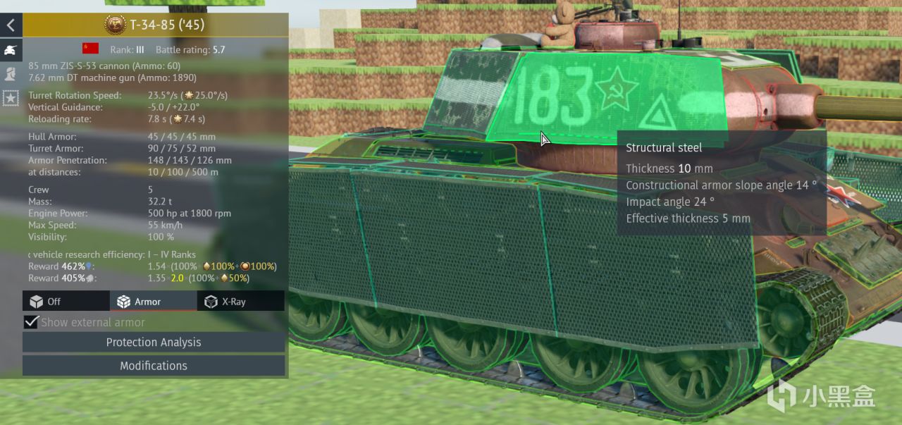 最后提一嘴,虽然有各种铁板的加持,金币3485和IS-1的重量和马力和原版完全一样,这也是符合Gaijin之前类似载具的一贯操作了。比较神奇的是,3485E作为多了几个铁丝网的3485换皮,居然比原版不带履带板的3485还轻了200kg,不过在实战中也没什么区别就是了。