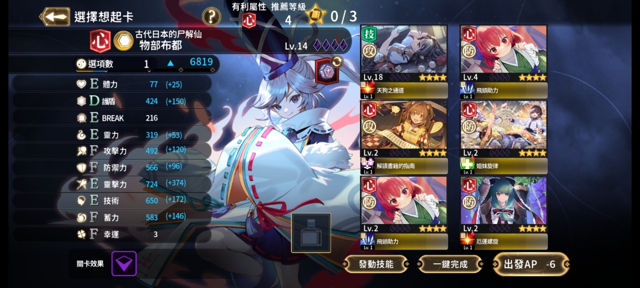 每個角色最多可攜帶6張【想起卡】:每張【想起卡】都對應不同的東方角色,附帶各自的屬性強化以及主動或被動技能。